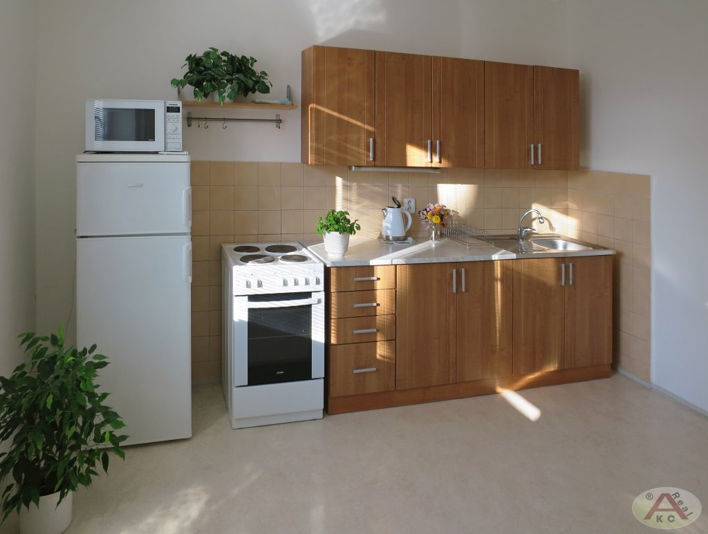 Byt se nachází ve zvýšeném přízemí cihlového domu, ulice Na luzích, 3 min. od CHKO Divoká Šárka a 2 min. od metra (stanice Veleslavín). Byt je vybaven kuchyňskou linkou, lednicí, pračkou a mikrovlnkou, u kuchyně je spíž. V koupelně s vanou je bojler, toaleta samostaná. Okno z kuchyně do zahrady, z pokoje do klidné ulice. Bezproblémové parkování. Ihned k dispozici. Pouze dlouhodobý pronájem.