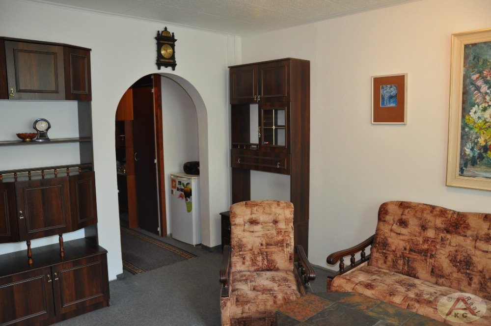 Byt je částečně vybaven nábytkem (viz foto) a spotřebiči - TV, starší myčka a pračka (v případě zájmu možno byt vyklidit). Ihned k dispozici.